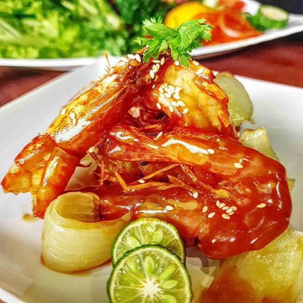 Udang Masak Kecap Inggris Sauteed prawn with Onion and Dark sauce (Sharing menu) Rp 222.000 Available - +