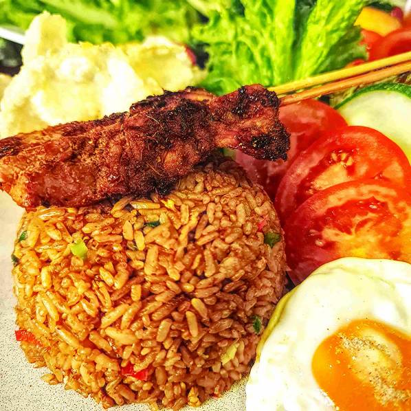 Nasi Goreng Ayam Fried Rice comes with Chicken Skewer, Over Easy Egg, Pickles, Sambal and Crackres Rp 106.800 Available - +